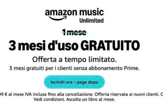 Nota bene: Se in passato hai già usufruito della promozione gratis potresti vedere il pagamento di 0,99 € al mese per tre mesi. Rimane comunque conveniente visto che l’abbonamento mensile costa 9,99 € al mese.