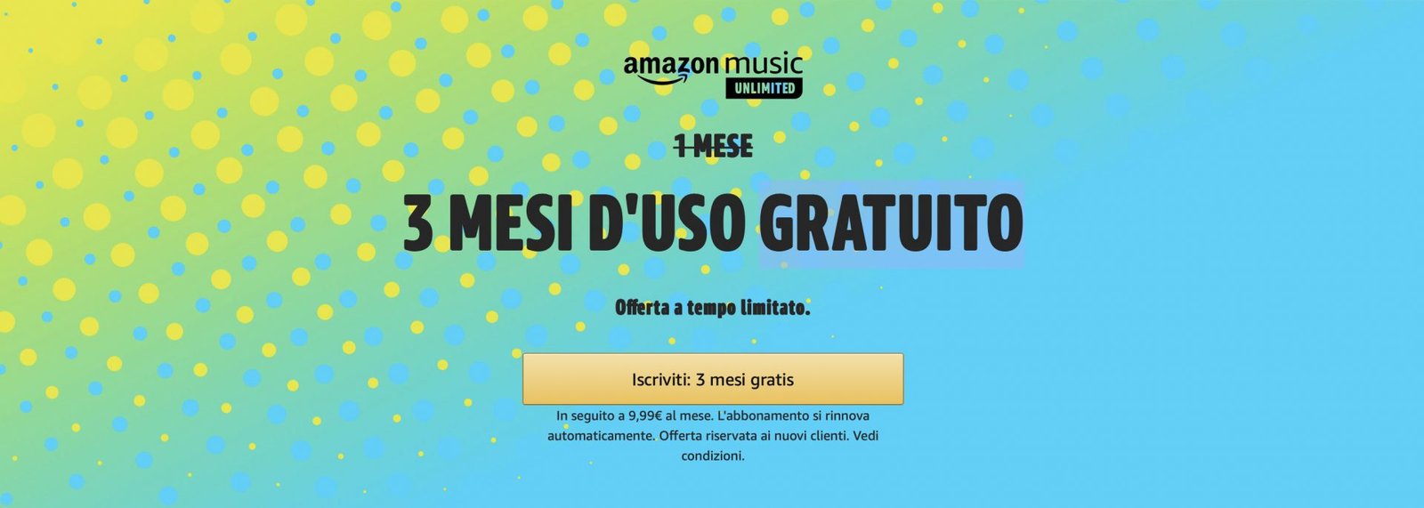 Parte bene questo settembre con Amazon che sta scontando diversi prodotti e sopratutto, i loro abbonamenti tra cui Amazon Music Unlimited. Avete la possibilità di riscattarlo gratis per tre mesi, pote...