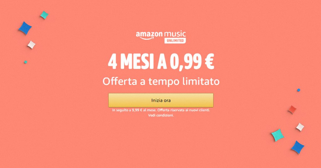 La piattaforma streaming di Amazon dedicata al mondo della musica è in offerta per quattro mesi a soli 0,99. Un offerta che è stata sempre apprezzata e inserita svariate volte in precedenza. Termini e...