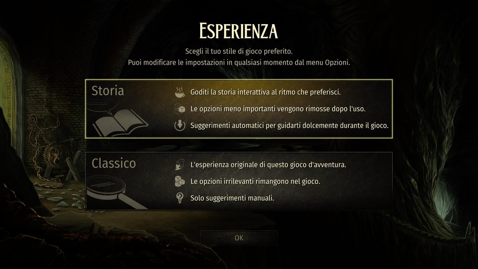 Il primo è rappresentato dalla possibilità di affrontare l’avventura in una versione “Storia” dove oggetti e opzioni non più utili vengono rimosse e ci sono degli aiuti automatici per proseguire senza frustrazione.
