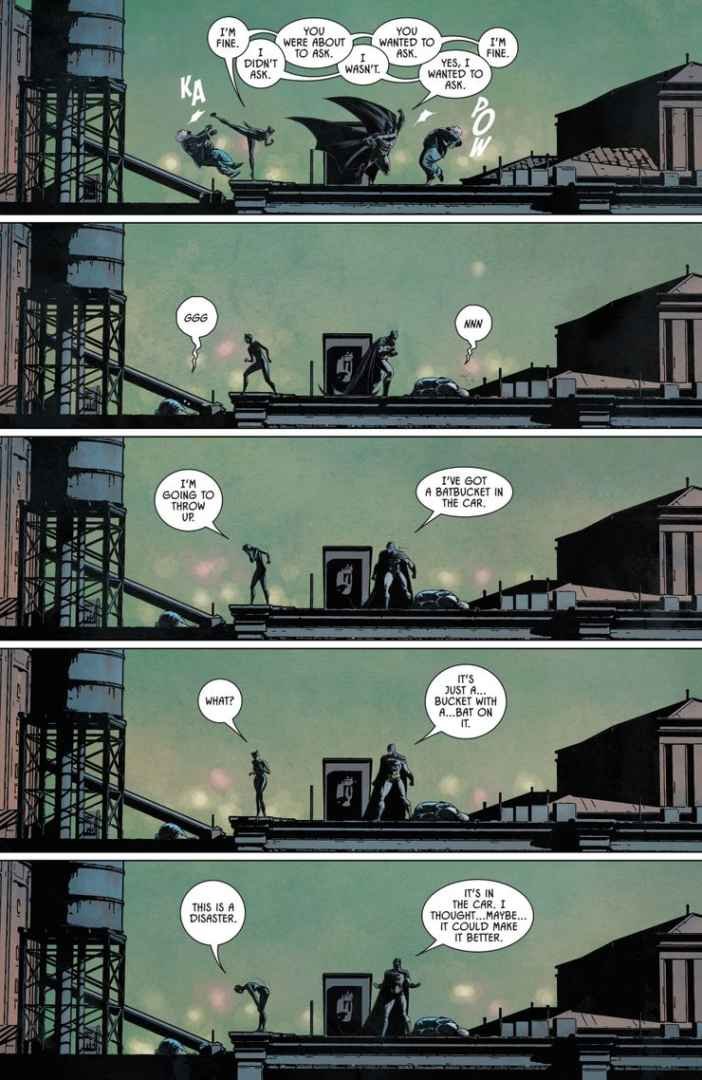 Le scene in questione sono disegnate da Mikel Janín e mostrano Bruce che comunica la grande notizia a Selina, che sulle prime non sembra essere molto felice.