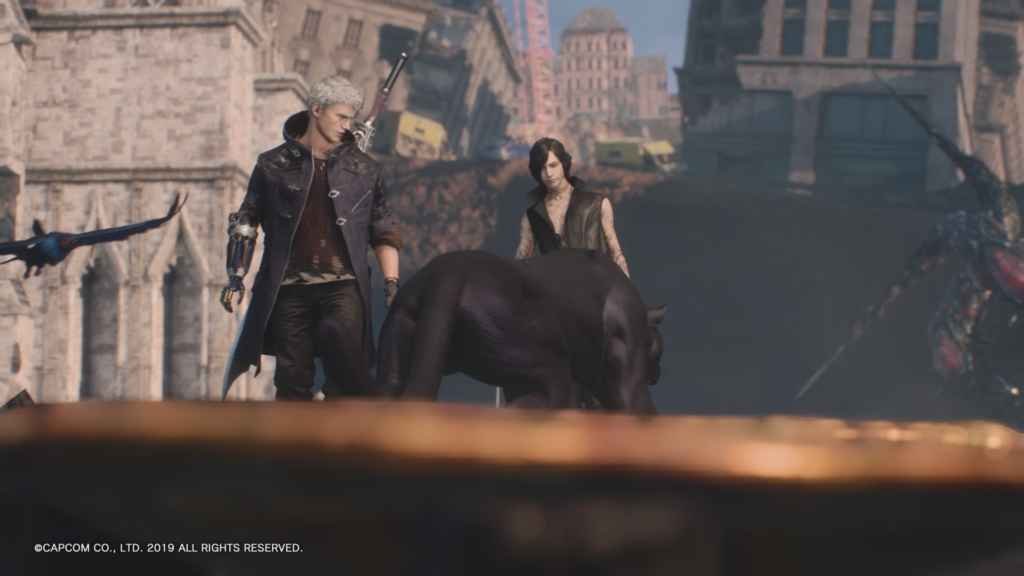 V, invece, si dimostra essere una ventata d’aria fresca nel mondo di Devil May Cry. Anche questo personaggio è abbastanza “semplice” nell’utilizzo se paragonato al cacciatore di demoni per eccellenza. La particolarità di V, però, è quella di non essere adatto al combattimento ed infatti non sarà lui ad impugnare armi e a falciare demoni, per questo ci saranno Griffon, Shadow e Nightmare. Questi tre sono demoni (che fanno chiaramente eco a dei boss affrontati a Mallet Island nel primo Devil May Cry) combatteranno al posto di V, che si limiterà ad inferire il colpo di grazia con il suo bastone. Mentre Nightmare è legato al Devil Trigger di V, Griffon e Shadow, invece, saranno rispettivamente i suoi attacchi a distanza e quelli ravvicinati e, come tutti, avranno una barra di vita e finiranno in “stasi” se questa si consuma.