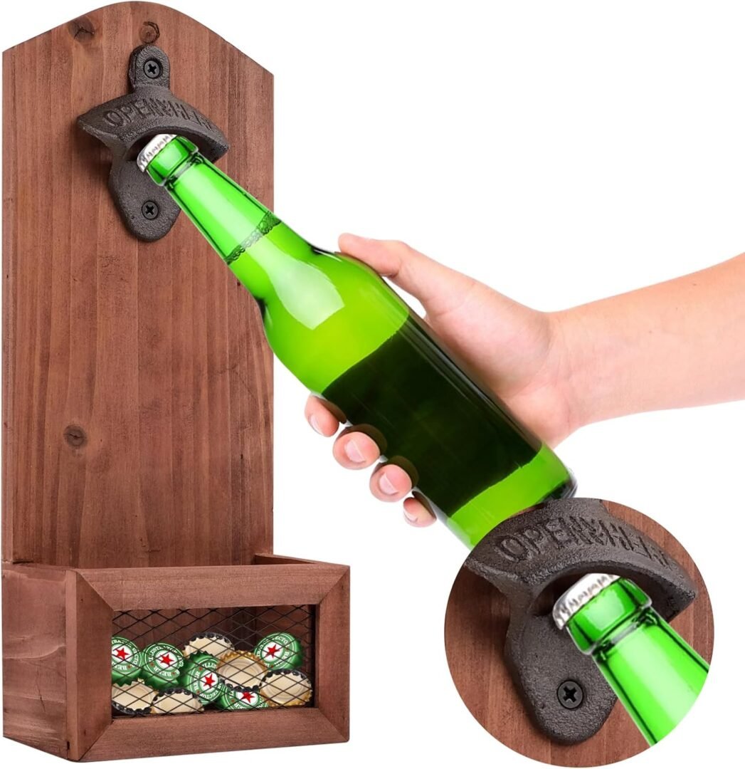Questo apribottiglie da parete in stile retrò è l’accessorio perfetto per gli amanti della birra e del design vintage. Realizzato in legno massiccio e ferro resistente, unisce praticità e stile, aggiungendo un tocco di originalità al tuo bar, alla tua cucina o al tuo patio.