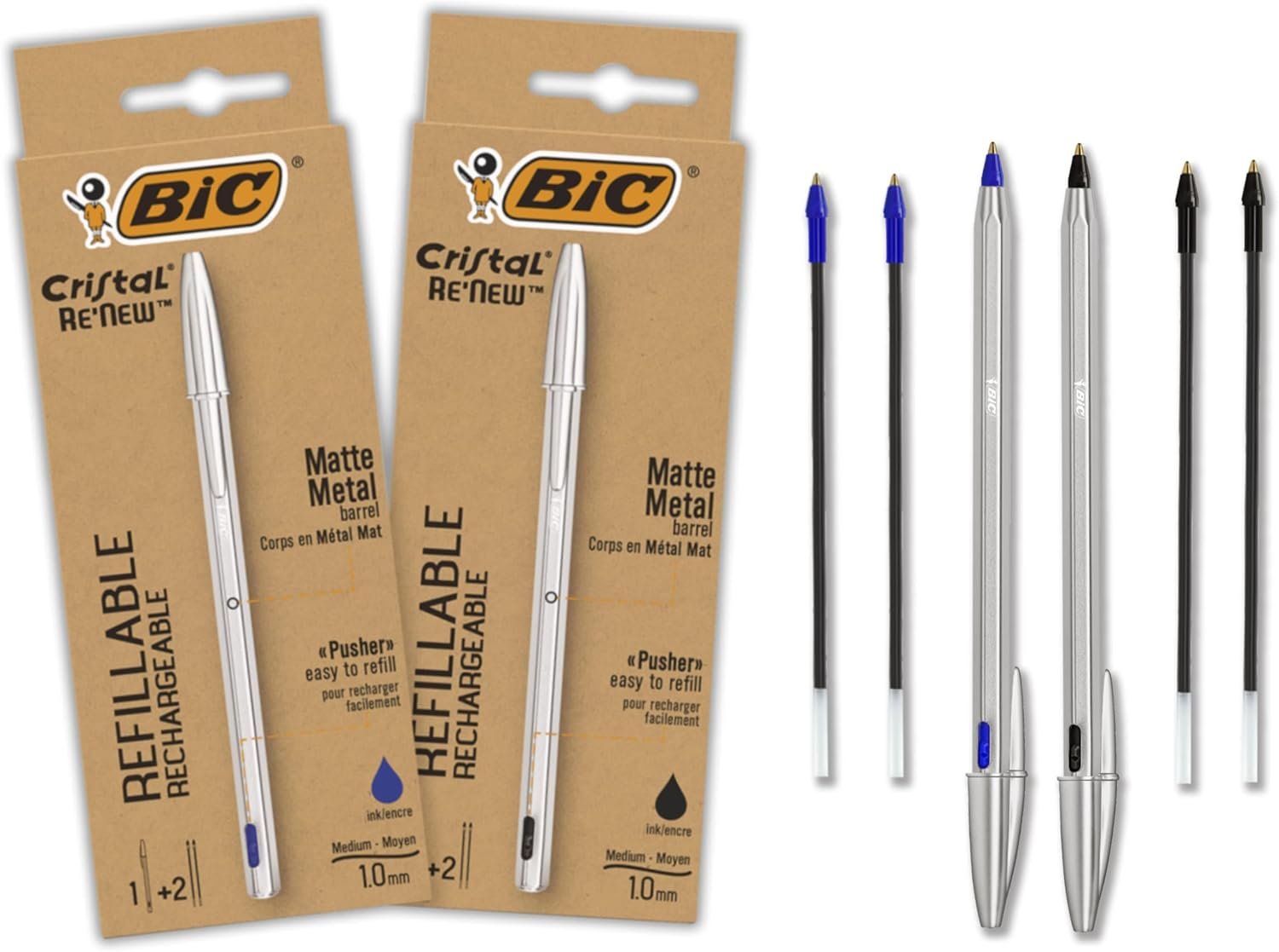 - Fusto in metallo ricaricabile: Dì addio alle penne usa e getta! BIC Cristal ReNew è dotata di un fusto in metallo resistente e ricaricabile, per una scrittura che dura nel tempo.