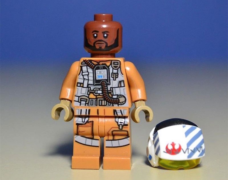 Successivamente abbiamo tutti scoperto che il pilota possiede un nome ed è di colore nero. LEGO quindi ha pubblicato da poco la versione rivista e aggiornata del pilota. Oltre al nome e il colore della pelle è cambiato anche il colore del casco e dei piccoli dettagli, che rispecchiano a pieno il film.