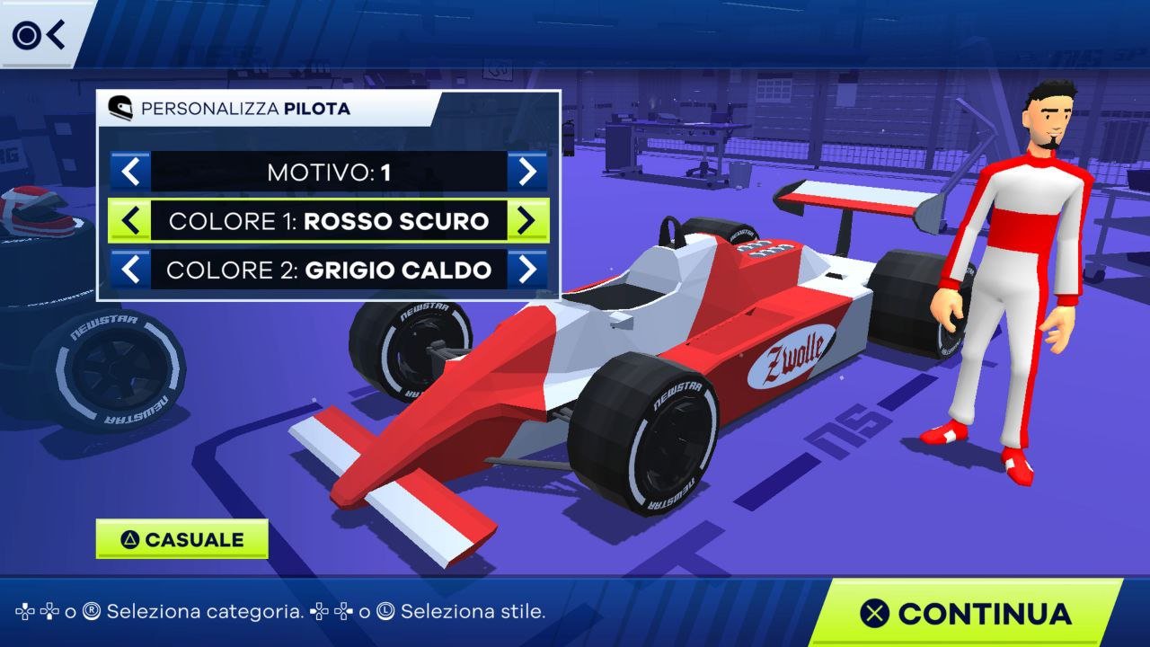 Prima di partire e sfrecciare tra le varie località ci sarà un breve tutorial che spiegherà i comandi che saranno i classici per ogni gioco di corse. Una volta finito, ci sarà una piccola personalizzazione del nostro pilota dedicata alla livrea del casco e della vettura.