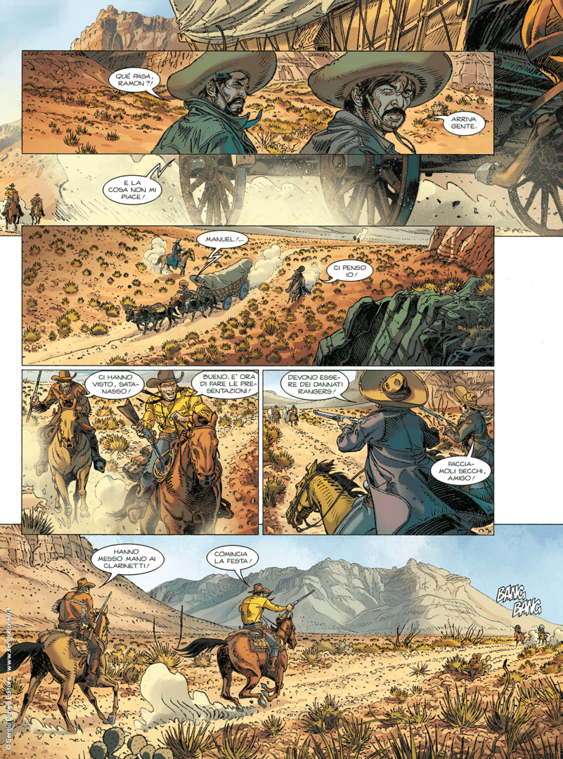 La storia scritta da Pasquale Ruju ha il suo solito andamento. L’inizio ci mostra da subito il villain principale della vicenda, Diego Portela, crudele e desideroso di una vendetta molto personale. L’uomo si ricorda il momento in cui fu condannato a morte per la fustigazione. Il fato vuole che la sua vita fosse risparmiata e con un incantesimo le sue pistole sono infallibili. Un uomo tanto pericoloso quanto determinato nel portare avanti la sua sete di vendetta.