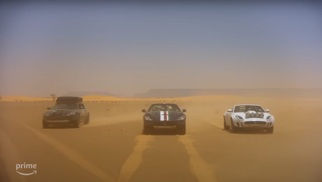 Sand Job, un nome che la dice lunga su tutto. Un gioco di parole che rimanda direttamente al genere XXX e che vede il trio tornare a correre all’avventura. Certo, tutti hanno ormai una certa età e questo fattore si sente. Caspita se si sente. Stavolta il fato ha portato il gruppo direttamente in Mauritania. Lo scopo è quello di dimostrare che è possibile creare un auto da “rally” su base sportiva senza spendere un patrimonio della Lamborghini Huracàn Sterrato. Per questo scopo il buon Jeremy Clarkson ha scelto la Jaguar F-Type Roadster, Richard Hammond, invece, una fiammeggiante e problematica Aston Martin DB9 Volante, mentre James May, Maserati GranCabrio.