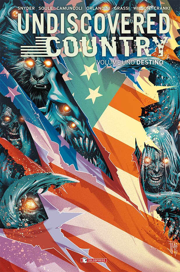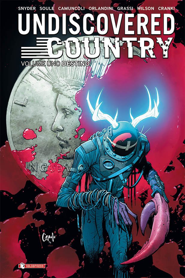 Considerata l’eccezionale importanza della serie, saldaPress ha scelto di pubblicare UNDISCOVERED COUNTRY anche in triplice edizione variant. Un’iniziativa molto speciale, che coinvolge altre realtà dell’editoria italiana. Si parte da un’edizione variant exclusive con slipcase e contenuti speciali in tiratura limitata a 1000 copie numerate, disponibile in fumetteria e nello shop online del sito saldapress.com (euro 29,90) e si prosegue con tre edizioni variant limitate a 500 copie numerate: due destinate ai distributori Manicomix e Starshop (euro 21) che potranno essere ordinate dalle fumetterie, e una destinata ad Amazon (euro 21).