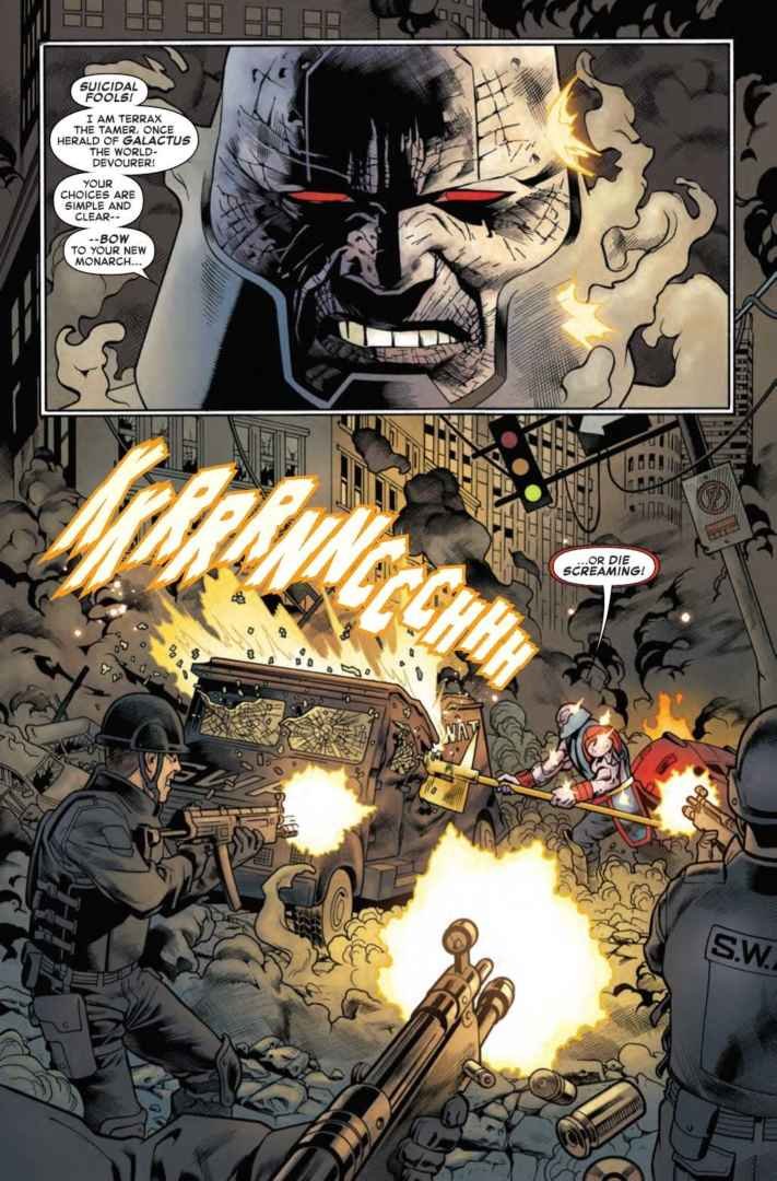 Dietro i testi dell’albo troviamo Christos Gage, mentre le matite sono di Mike Hawthorne e la cover è firmata da Mike McKone. In questo numero vedremo Terrax distruggere la città di San Francisco e l’unico che potrà fermare la minaccia incombente è Superior Spider-Man.