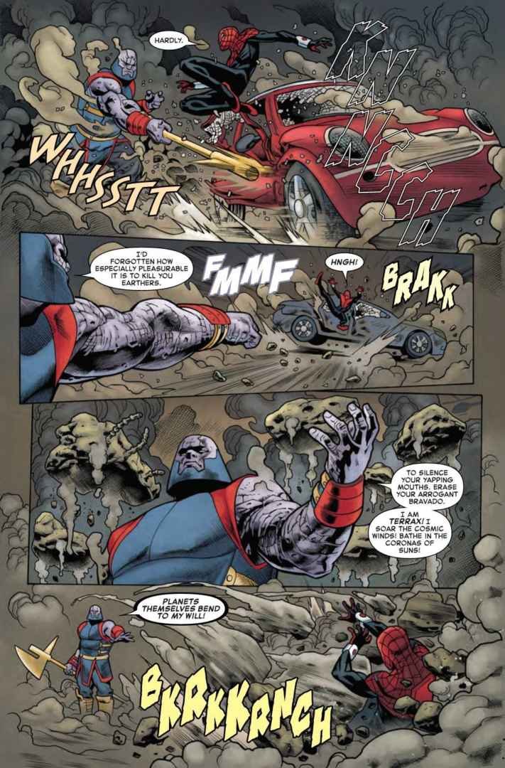 La settimana prossima negli USA uscirà il secondo numero della testata Superior Spider-Man #2 con Doctor Octopus che veste i panni del ragno. In questo combatterà contro Terrax, che come sempre sembra uguale a Darkseid. Potete andare in calce per visionare le tavole in anteprima.